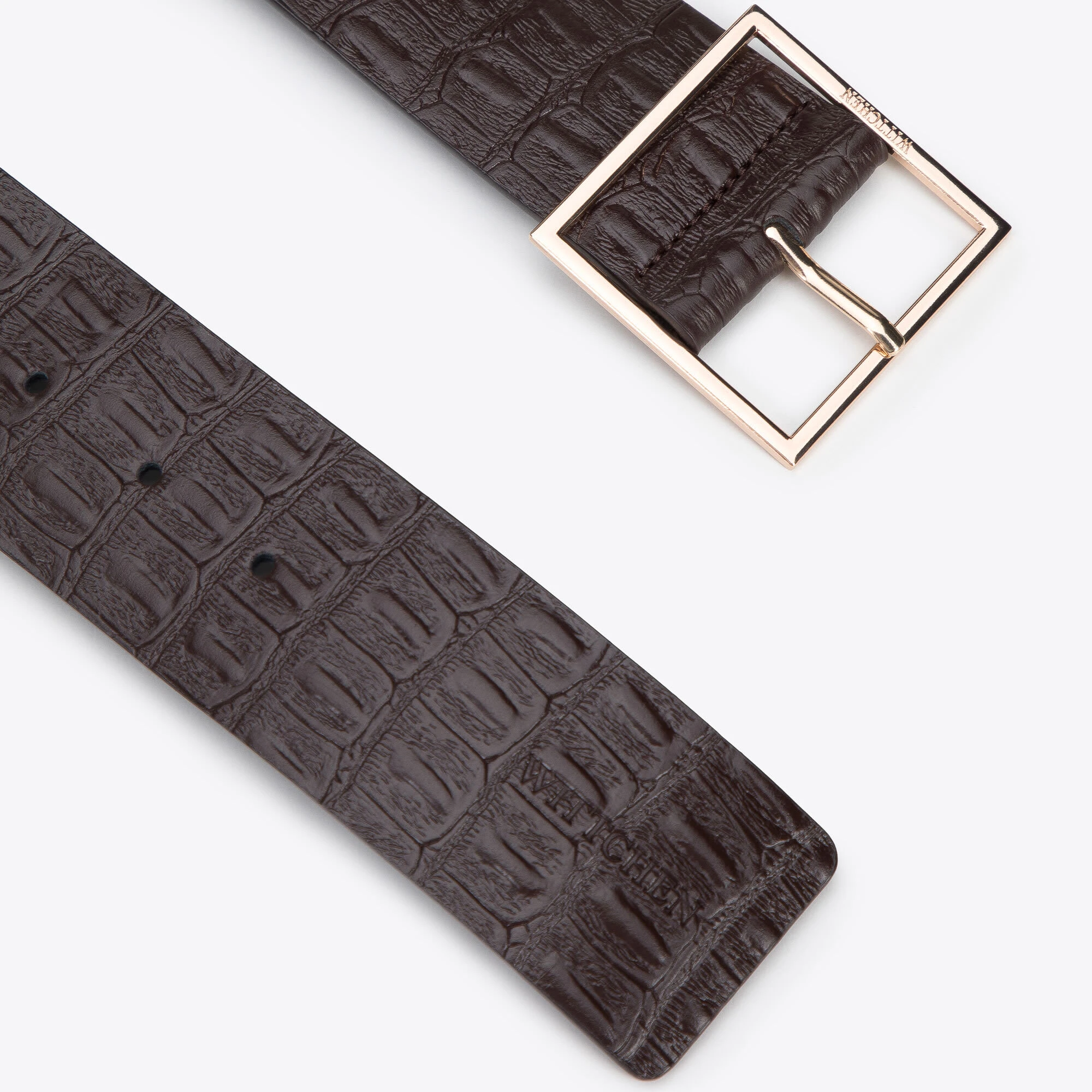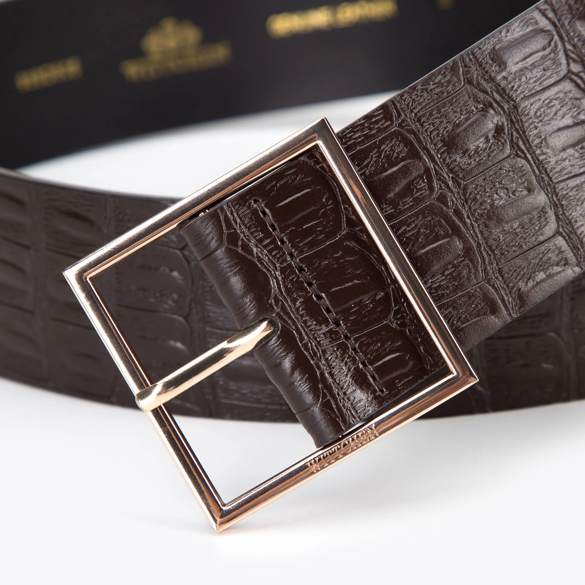 This sophisticated women’s belt is a classic staple for everyday outfitting. Made of high-quality natural leather with croc-embossing, this belt boasts wide design. Embellished with a classic square buckle, this accessory will team perfectly with plain as well as patterned outfits. A thin women’s leather belt will add a new character to many of your outfits.